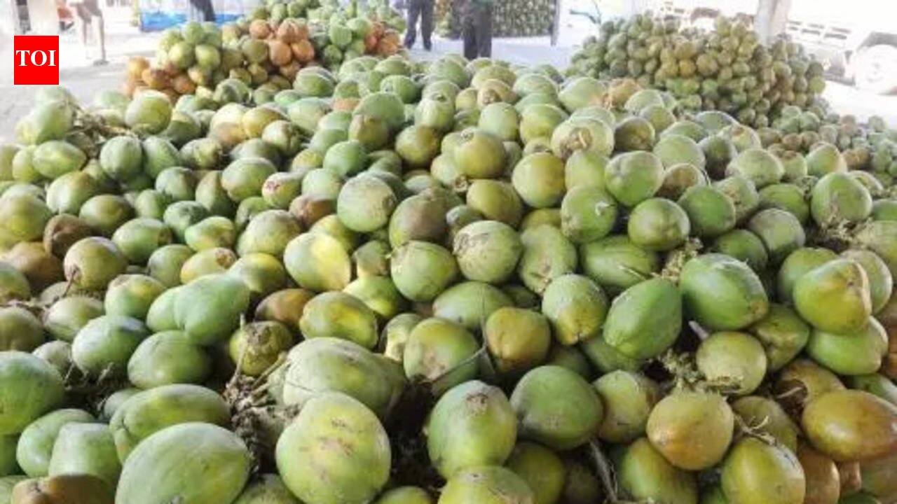 Bengaluru: Even before summer has officially set in, Bengaluru’s favourite natural coolant is already getting costlier. Tender coconut prices have begun climbing across the city, with vendors citing rising temperatures. Retailers say that if the trend continues, prices could touch Rs 70 during peak summer.Tuesday, larger coconuts were selling at Rs 60 a piece, while smaller ones were priced between Rs 25 and Rs 30. Wholesale prices at the Maddur APMC market in Mandya district — considered one of India’s largest tender coconut markets — hovered between Rs 30 and Rs 35. Bengaluru vendors source most of their stocks from Maddur.Though peak summer demand is yet to begin, vendors say sweltering afternoons are already driving brisk sales. Interestingly, arrivals at Maddur have surpassed the previous year’s supply due to good rainfall in 2025. Maddur APMC secretary Satish said 2-5 lakh coconuts arrive daily, touching six lakh on some days.“The current wholesale price has touched Rs 35 per nut. Considering demand from Karnataka and other states, it may cross Rs 40–45 soon. Top-quality coconuts are sent to markets like Delhi, Chandigarh, Uttar Pradesh and West Bengal, while the second-grade and leftover stocks are sold locally,” he explained.Traders said second-grade coconuts bought at Rs 20–30 wholesale are retailed in Bengaluru for Rs 50–60. Smaller leftovers, purchased at Rs 8–10, are sold in the city for Rs 25–30.“We are selling the large ones at Rs 60 and the small ones at Rs 25–30. Prices may touch Rs 70, but customers hesitate at that rate. Some coconuts disappoint with less water and more copra, so many prefer smaller ones,” said Giri J, a vendor near Banashankari.———— Market dynamics-Coconuts traded at Maddur market2024-25: 9.3 crore 2025-26 (till Feb): 9.5 crore -Coconuts sent to north India: 80-90 truckloads (10-14 wheelers) daily-Sent to Bengaluru: 40-50 truckloads (smaller trucks)-Sold in Bengaluru: 4-5 lakh-Small coconuts sold in Bengaluru: 1- 2 lakh-Farmgate price: Rs 25-35——