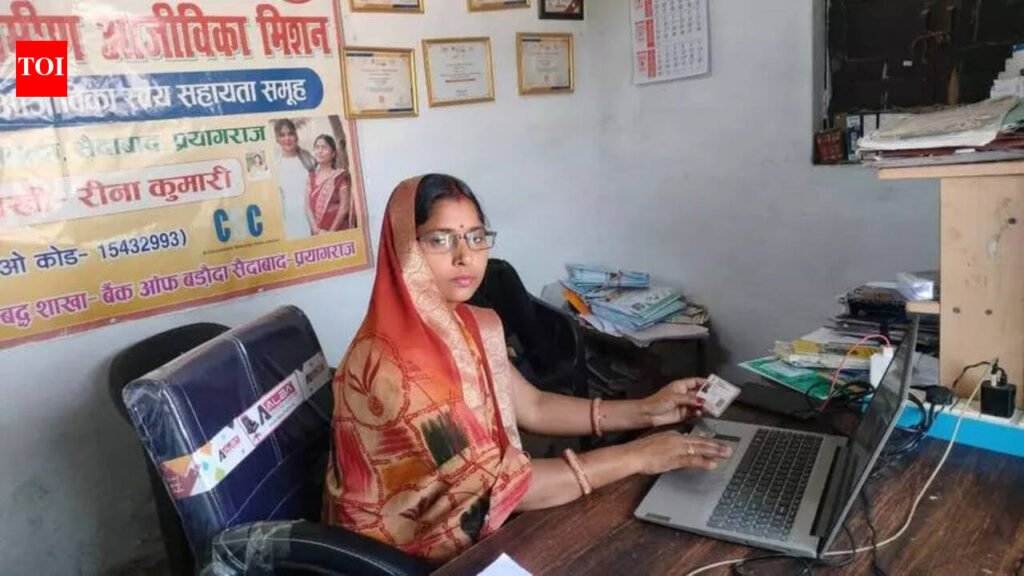 Prayagraj: The banking correspondent sakhis in Uttar Pradesh are expanding banking services in rural areas, making it accessible for all.The expansion of banking services in rural areas has always been considered a major challenge due to a lack of infrastructure and manpower, but an army of rural women has accomplished this task admirably.For instance, Reena Kumari, a resident of Nevada Kheruwa village in the Saidabad block of Prayagraj, has carved a niche for herself by managing over 3,000 bank accounts in 21 rural villages. Prime Minister Narendra Modi had also praised Reena’s work.Banking correspondent sakhi Reena said that she started working in 2021 after joining the State Rural Livelihood Mission and forming the Khushi Livelihood Self-Help Group. She began visiting village to village, encouraging women to open accounts. Initially, she faced many challenges, as many women refused to open accounts but she continued to contact women and now manages 3,142 accounts.Reena’s husband works as a teacher in a private school, and she has two kids, aged 5 and 8. With no other source of income, Reena joined the Khushi Aajeevika Self-Help Group and began working as a banking correspondent sakhi. Reena visited homes of villagers offering deposit and withdrawal services and also opened accounts at their homes.Once she received her CSC ID, she started receiving work related to electricity bills, crop insurance, obtaining copies of land records, applications for Kisan Samman Nidhi, Sukanya Samriddhi Yojana, old-age pension, disability pension, widow pension, PM Vishwakarma Yojana, PM Surya Ghar Yojana, and other govt schemes.Reena’s work not only helped villagers open bank accounts but also generated income for her through their transactions. Inspired by her, many women started working as banking correspondent sakhis. This campaign has proved a lifeline for many women like Reena, under the guidance of Prayagraj’s deputy commissioner (NRLM) Gulab Chandra. Currently, 1,040 banking correspondent sakhis are working in Prayagraj district.