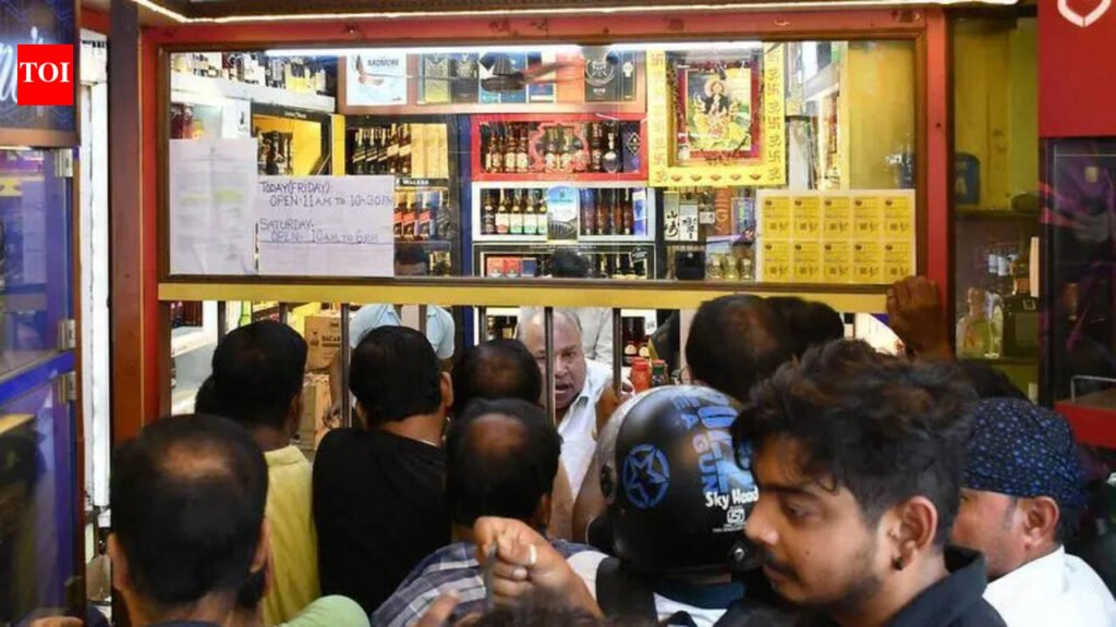 Kolkata: The intense heat notwithstanding, thousands of people across the city queued up outside liquor outlets right from Friday morning as off-shops reopened after a four-day shutdown.By 8.30 am, 40-50 people could be seen standing outside multiple stores, waiting for their two-bottle-per-purchase quota, ordered by the excise department. While areas with several outlets saw relatively shorter queues, the turnout remained steady through the day, underscoring pent-up demand following the sudden suspension of sales.The mood was a mix of impatience and relief. For many, the wait under the scorching sun was a test of endurance. Yet, as they emerged from shops, clutching their purchases, satisfaction was written on their faces. By evening, off-shop owners had run out of stock, unsure about how to cater to the demand on Saturday. At Ruttonjee Dadabhoy and Sons FL Off Shop on Ganesh Chandra Avenue near Chandni Metro station, the queue snaked along the pavement. Nilratan Patra, a tea-seller from nearby Malanga Lane, joined in at 8.20 am, leaving his shop in the care of an employee. “Morning is a busy time for me but I had no choice,” said Patra, as he came out of the shop around 11.20 am with his purchases. “Liquor shops were suddenly shut for four days without any alert.“The shutdown without a warning seemed the grievance among most customers. “If they wanted to impose a prohibition, they should have given us time to stock up. This sudden ban is sheer harassment,” said Raju Sharma, who along with friends, arrived outside an off-shop in Girish Park around 8 am. Despite the exasperation, there was little disorder. Civic cops were stationed outside some outlets to manage crowds but customers themselves maintained order. “If there is any chaos, they may shut the shop. It’s better to wait for our turn,” said Sudipto Ghosh outside Empire Restaurant & Bar FL Off Shop Counter on Lenin Sarani.The two-bottle-per-purchase limit was maintained strictly, which, too, disappointed many as they had hoped to stock up for the next round of prohibition days, which would start from Saturday 6 pm. Regular operations will resume only on April 30 after the second phase of the election on April 29. Off-shops had received verbal instructions from the excise authorities not to sell more than two bottles per person. But customers visited multiple shops to dodge the norm. “I visited three shops and picked up six bottles,” said Jitendra Sau, a resident of Collin Street. By afternoon, fatigue began to show. As the sun bore down, people stepped out of queues briefly to find shade and water. In Kasba, Soumik Mukherjee, a medical representative, waited for two hours before he could make a purchase. “Once I am done, my colleagues will go in a rotational way, ” he said. Shop owners struggled to keep up with the demand. A shop owner in Kasba said they had to replenish supplies from their godown multiple times. “We had expected a rush but not this much,” he said. By evening, customers at many places were not left with too many choices. “I wanted to buy premium beer but could get only the strong variety,” said Rinky Das, who visited a shop in the evening.