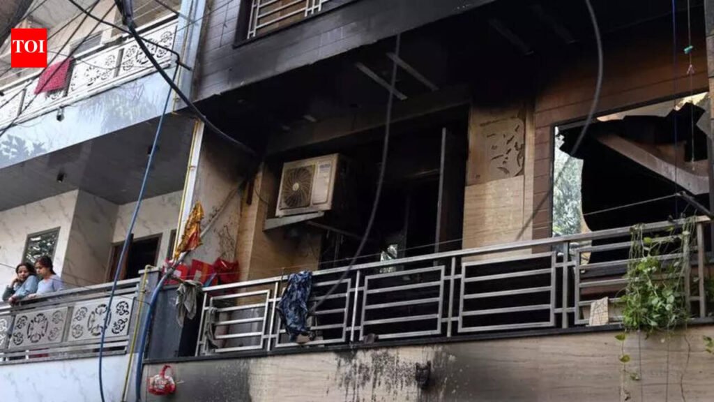 New Delhi: At least 14 people, among them fire fighters and Delhi Police personnel, were injured when an LPG cylinder exploded during a blaze inside a building in northwest Delhi’s Majlis Park on Sunday morning.The fire broke out around 9 am on the stilt floor, where vehicles were parked and household items were stored.The police have registered a case of negligence. When TOI visited the spot, shattered glass lay scattered across the narrow lane outside the blackened building. Local people said the fragments flew in all directions after the explosion, injuring bystanders.Deepika (32), who lives on the upper ground floor with her software engineer husband Ravi and their child, said: “Most of us were asleep. We suddenly smelled smoke and rushed downstairs. My husband and I grabbed our child and began alerting neighbours. The moment we reached the ground floor, there was a huge blast.” Deepika suffered minor injuries to her forehead after windowpanes shattered from to the impact of the blast.The family also runs an LED business, and several glass sheets stored in the stilt area added to the damage when these cracked and scattered.On the floor above, KP Singh (50), a govt employee, lives with his wife Gulab Devi (50) and their daughter Shikha (26). Devi told TOI, “Around 8.30am, I sensed something was wrong and stepped out. The lift had stopped working and the staircase was filled with smoke. We somehow managed to make it out.” As residents scrambled to safety, fire and police personnel began rescue and attempted to douse the flames. Some local people were trying to remove a parked car when the LPG cylinder on the upper ground floor exploded, causing severe burns to several responders.Among those critically injured were leading fireman Suresh Pehel (57), fire operator Sitaram Meena (29), and fire officer Ved Prakash (50), all posted at the Wazirpur fire station. Pehel suffered nearly 30% burns and was taken to Safdarjung Hospital along with the other injured police personnel, including ASI Sandeep (49) and constable Rahul (31) of Adarsh Nagar police station, and SI Prem Pal (54) posted with PCR, north zone. Among the injured people were Deepak Goel (40), Sher Khan (32), Rajesh (39), Jagdeep Singh (54), Vishal (40), Rahul (43), Pankaj Aggarwal (52), and Pooranchand. The burns they sffered ranged from 8% to 30%. Standing outside Safdarjung’s Burns Ward, Pehel’s brother Rajesh, who had travelled from Haryana, said: “In his 30 years of service, this is the first time he has suffered injuries of this severity. We have established businesses back home, but he chooses to continue serving in the fire department and he is just three years from retirement.”Ved Prakash’s uncle, Zile Singh (70), said: “He has been with the fire services for nearly two decades. This is the first time he has been injured in the line of duty.”Locals suspect a short circuit, possibly in an e-scooter may have triggered the blaze.