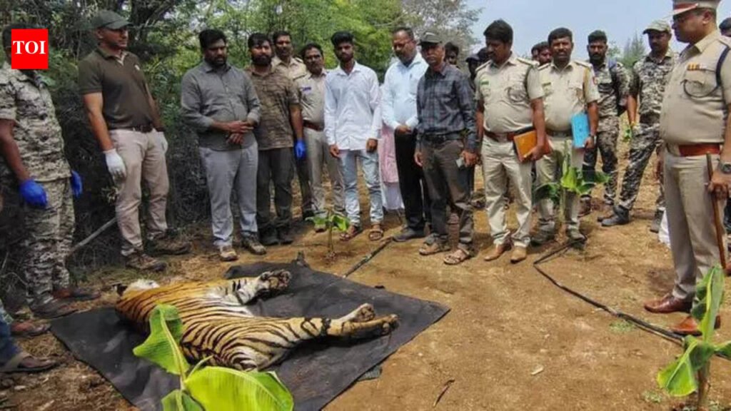 Mysuru: Bandipur Tiger Reserve (BTR) authorities Tuesday identified a dead tiger cub on private land, away from the tiger reserve. The visual of the female big cat was captured on a drone camera. Authorities suspect it had died of electrocution. A case has been filed under the Wildlife Protection Act and an inquiry is under way. BTR director S Prabhakaran told TOI, following a complaint about the presence of big cats in the region, local forest officials were scanning the area using drone cameras, when they found a tiger lying in the same position for more than two hours. A team was rushed to the spot and soon it was confirmed that the big cat had died. The director said it was a female cub that got separated from its mother recently. Responding to a query, the director said the nearest forest area is about 20 km from the spot. CESC officials informed forest staff that power had been illegally drawn from a pole to the fence where the tiger cub was found dead. The landowner and lessee had used this illegal connection to protect their land and crops, he added. Prabhakaran said a case has been registered against them over the death of a Schedule 1 animal under India’s Wildlife Protection Act. A week ago, a tiger had killed a farmer’s livestock. To rescue the tiger, forest department officials had set up a trap in the area. Eight deaths in nine months in Ch’nagar Last June, five tigers, including a mother and her four cubs, had died from poisoning in the Male Mahadeshwara Wildlife Sanctuary. In Oct, a tiger was killed, its carcass chopped and buried. Another tiger had died after getting trapped in a snare in the Gundal reservoir area of the BRT Tiger Reserve in Feb this year. The latest incident in Padaguru, Gundlupet, is the eighth death in the district over the past nine months. Tiger attacks calf in Kodagu Meanwhile, a tiger attacked and killed a calf Sunday evening in Bajekolli, Kodagu district. In the past few months, there were several incidents of tiger attack in Badaga Banangala village.