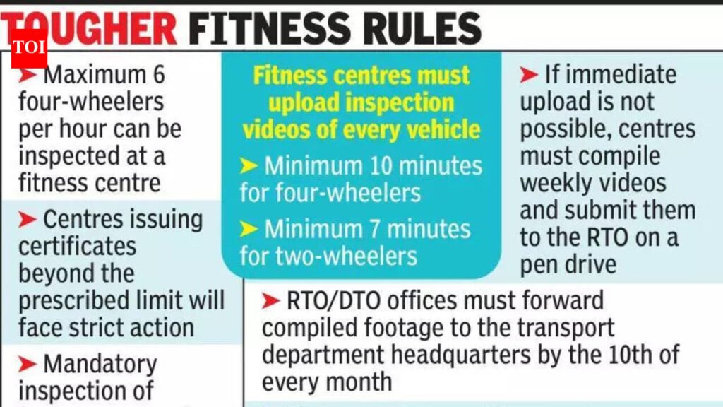 Jaipur: The state transport department has issued stringent guidelines to ensure that vehicle fitness certificates are granted only after mandatory physical verification, warning of FIRs against centres found violating norms. To prevent issuance of illegal fitness certificates without proper inspection, the department has capped inspections at six vehicles per hour. Officials said the limit is aimed at ensuring thorough physical checks of each vehicle. “To curb cases of illegal fitness certificates being issued to vehicle owners without proper inspection, strict guidelines were issued. Fitness centres will now have to upload a 10-minute video for a fitness check of a four-wheeler and a 7-minute video for issuing a fitness certificate for a two-wheeler,” a senior transport department official said. The video must clearly display the vehicle’s registration number, chassis number, inspecting officer and driver. Only then will it be considered valid for submission. Officials added that if more than six four-wheelers are issued fitness certificates within an hour — a detail that can be verified through the Ministry of Road Transport and Highways portal — action will be initiated against the concerned fitness centre. Centres have been directed to compulsorily examine brakes, suspension, steering, wheel alignment and lighting systems, among other components. If a centre is unable to upload inspection videos to the department’s online portal, it must compile weekly footage and submit it to the regional transport office on a pen drive. RTO and DTO offices will forward the compiled videos to transport department headquarters by the 10th of every month. All inspection footage must be preserved by fitness centres and authorities for six months to enable cross-verification in case of accidents or disputes.