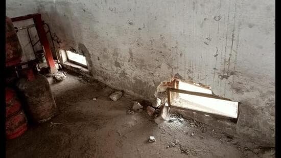 The LPG storeroom at Karuna LPG Agency in Lakhimpur Kheri’s Palia from where 108 cylinders were stolen (HT Photo)