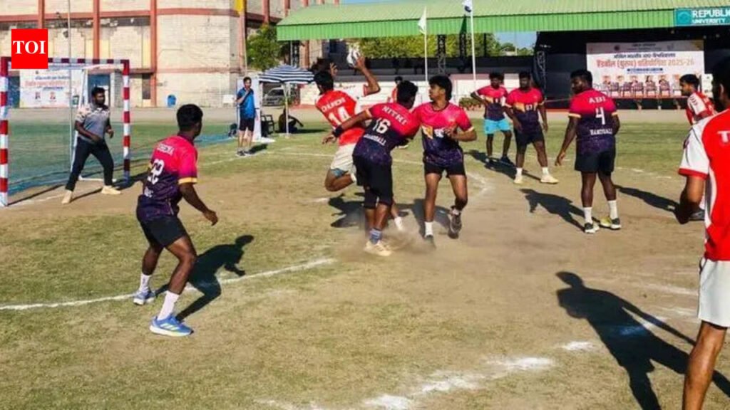 Jaipur: University of Rajasthan, UEM, Jaipur, Periyar University and Saurashtra University, Rajkot stormed into the quarterfinals of the ongoing All India Inter-University Handball Men tournament at the University Sports Complex here on Thursday.The five-day tourney is being organised by the University of Rajasthan Sports Board in which top sixteen teams from across the country are participating.In the third and final league match, University of Rajasthan thumped Annamalai University, Chidambaram 40-31 after leading 19-12 at the half-time. Dinesh was the top-scorer with eight goals. Sumit, Mohit and Jasman contributed five goals each.Amritsar’s GNDU dominated from the word go to oust Manipur University 36-18, thanks to a nine-goal effort from Harshdeep.In a high-scoring encounter, UEM Jaipur defeated VIT Vellore 50-24. Divyanshu excelled for the winners with 11 goals.Saurashtra University, Rajkot also booked their quarterfinal berth by dismissing USTM Meghalaya 42-29.All the four quarter-finals will be played on Friday morning, while the semifinals are slated in the evening session.Quarter-final line-upUEM, Jaipur vs Periyar University, Salem (6.30 am)Saurashtra University, Rajkot vs KAHE, Coimbatore (6.30 am)University of Rajasthan vs GNDU, Amritsar (6.30 am)LPU, Phagwara vs Annamalai University, Chidambaram (6.30 am).