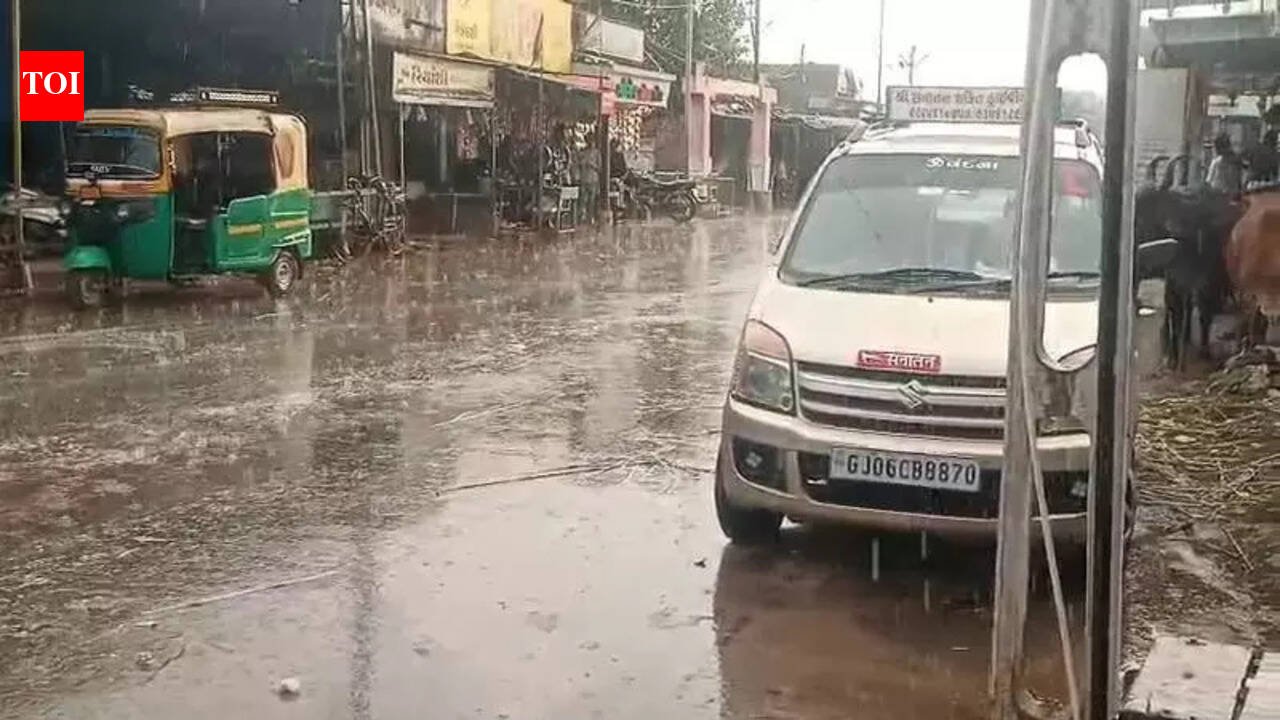 Rajkot: After weeks of intense heat spells and scorching daytime temperatures, weather conditions across parts of Gujarat took a sharp turn, with unseasonal rain lashing districts like Amreli and Jamnagar, and some places even reporting hailstorms.According to reports, light to moderate showers accompanied by hail were recorded in Vadia and Bagasara talukas of Amreli district, briefly disrupting harvesting activities. In Bagasara, hail and rain affected daily life, while nearby villages including Shapar and Sudavad also witnessed unseasonal showers.The sudden rainfall has triggered anxiety among farmers, as key crops such as gram, wheat and coriander are currently ready for harvest or sale. Many farmers had already brought their produce to fields or APMC yards, leaving it vulnerable to damage.Farmers fear that continued showers could spoil crops, especially those lying in open fields or market yards. “If such weather persists, it will not only damage crop quality but also impact market prices,” said farmer Ali Bhai Jankhara.Savarkundla APMC secretary Mukesh Trivedi said the government has issued guidelines in view of the unseasonal rain. “Farmers have been advised to store their produce under sheds and cover it with plastic to prevent damage,” he said.In Jamnagar district too, wet conditions prevailed in villages of Lalpur taluka. The rain, coupled with gusty winds, brought down temperatures, although some areas witnessed brief spells of heavy rainfall.The India Meteorological Department (IMD) attributed the sudden weather change to a cyclonic circulation over west Rajasthan and a western disturbance in the upper atmosphere. These systems have created favourable conditions for cloud formation and sudden rain or thundershowers.Maximum temperatures are expected to fall by 2-3°C during next three days beginning Thursday.Light to moderate showers are expected between the morning of March 19 and March 20 at isolated places in districts including Banaskantha, Patan, Dang, Tapi, Navsari, Valsad, Jamnagar, Morbi, Dwarka, Kutch, Ahmedabad, Surat, Vadodara, Rajkot, Junagadh, Bhavnagar, Sabarkantha, Aravalli, Dahod and Mahisagar.Meanwhile, daytime temperatures dipped slightly, with several cities recording below-normal maximum temperatures. Key urban centres such as Ahmedabad (36.3°C), Vadodara (35.4°C), Surat (33.2°C), Amreli (36.1°C) and Bhavnagar (34.7°C) reported departures ranging from about 0.5°C to 3°C below normal.Coastal areas like Porbandar (-3°C) and Veraval (-2°C) also saw notable drops, while only a few pockets such as Bhuj, Rajkot and parts of Kutch recorded marginally above-normal temperatures.At 37.5°C, Rajkot remained the hottest city in the state, followed by Bhuj (37°C).