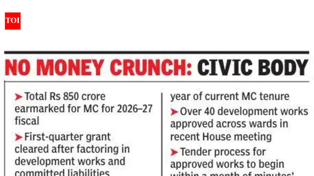 Chandigarh: The Chandigarh administration has sanctioned a Rs 300 crore grant-in-aid (GiA) to the MC for the first quarter of the 2026-27 financial year (April to June). Sources said the civic body is expected to receive the amount by Monday.The UT administration has earmarked a total grant-in-aid of Rs 850 crore for the MC for the current financial year. Based on the municipal corporation’s projected financial requirements, the UT finance department cleared the first-quarter instalment of Rs 300 crore. Officials said the sanction was issued after taking into account both developmental works and committed liabilities of the civic body.As the GiA is released as a consolidated amount, the MC has the discretion to plan expenditure according to priorities. While clearing committed liabilities remains the top priority every month, developmental works in municipal wards have gained focus, particularly as the ongoing financial year marks the final year of the present five-year MC tenure. Elections for the new municipal corporation are scheduled to be held in December, and councillors across wards have been pressing for expedited development projects.An MC official said several works are underway on the ground, while paperwork for hundreds of small and large projects is currently at different stages of planning and approval. “Many works are ongoing, and planning process for numerous projects is in progress. In the recently held monthly House meeting, more than 40 agenda items related to development works in multiple municipal wards were approved. The tendering process for these works will begin within a month after minutes of the meeting are approved,” the official said.The official added that the MC is not facing a financial crunch at present, allowing development works to be taken up on priority in various wards, based on requirements flagged by councillors and field offices.As per MC records, the civic body has committed monthly liabilities of around Rs 75 crore. These obligations constitute a significant portion of the civic body’s routine expenditure and include salaries and wages of employees, pensionary benefits for retired staff, and other recurring office expenses such as electricity, water and fuel charges. Minor repair and maintenance works are also part of the regular committed expenditure.Officials said the accounts department of the MC closely scrutinises all financial requirements before releasing funds. Disbursement of money is done after reviewing detailed expenditure estimates and obtaining approvals from senior officers, primarily the municipal commissioner.The sanctioned first-quarter grant is expected to enable the MC to meet its regular financial commitments while continuing with planned development works across the city during the initial months of the financial year.MC’s monthly committed liabilitiesSalaries — Rs 15.40 croreWages — Rs 26 crorePension — Rs 3.60 croreElectricity and water bills — Rs 12.50 croreMinor works and maintenance — Rs 11.50 croreOther charges — Rs 3.50 crorePetrol, oil and lubricant — Rs 2.50 croreTotal — Rs 75 croreMSID:: 130354823 413 |