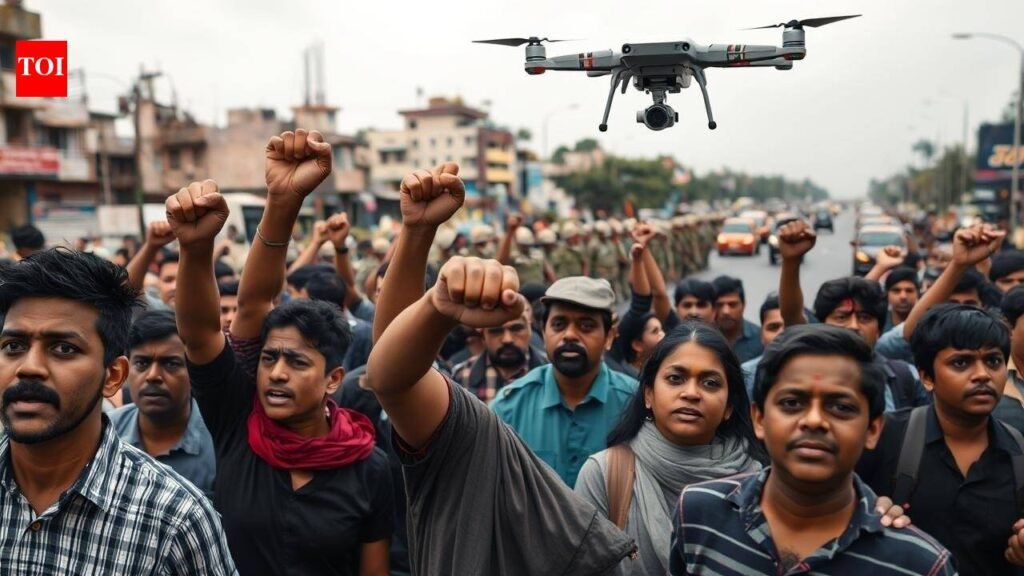 NEW DELHI: Anger spilled onto the streets of southwest Delhi’s Uttam Nagar on Friday as protesters blocked a major road for hours, vehicles were set ablaze and traffic ground to a halt following the death of a 26-year-old man who was beaten during a Holi clash.Members of Hindu outfits, including Bajrang Dal and Vishwa Hindu Parishad, gathered in large numbers beneath the Uttam Nagar East Metro station, sitting on the road and raising slogans while demanding strict action against those accused in the killing. Amid the rising tension, a car and a motorcycle parked in JJ Colony were also set on fire. Meanwhile, heavy police deployment has been made across the area, with additional officers and paramilitary personnel stationed to prevent any escalation. Drones were also deployed to monitor the protest site and identify those blocking the road.