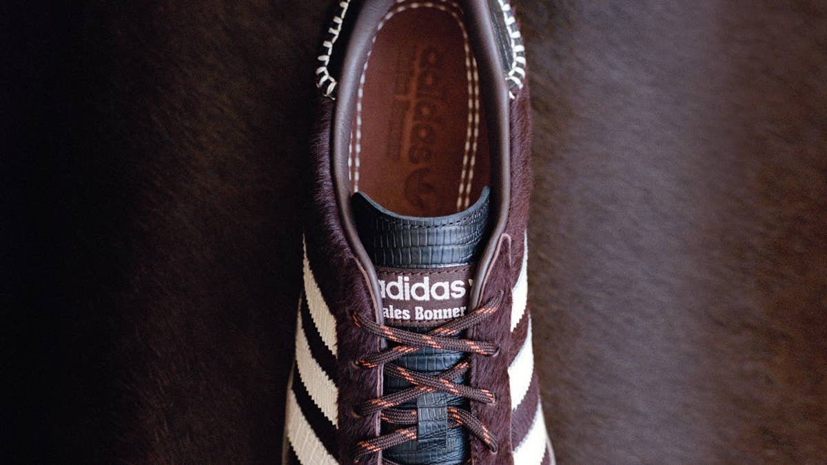 Adidas and Wales Bonner released their Spring/Summer 2026 collection on Friday, featuring five new sneaker styles and three apparel pieces. The signature WB Karintha is rendered in black and cognac colored leather toe overlay. The WB Gazelle Snake features a faux snake leather upper with cognac details. The WB Gazelle Pony (above) features a pony hair upper with black leather details and contrasting stripes. Meanwhile, the WB Adizero Adios incorporate brown leather and suede overlays, combined with signature stitched details on the heel and a hand-woven leather tongue. Finally, the footwear collection rounds out with the WB Karintha, which is hand crafted in Brazil and was first presented on the runway at the Wales Bonner Spring 2026 show. As for the apparel, the collection features a track top, track jacket and Beckenbauer track pant. Shop the lineup at adidas.com.