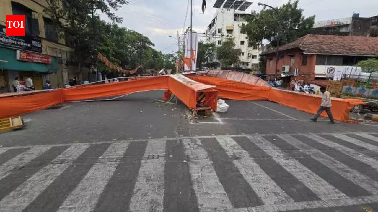 Nagpur: Festive enthusiasm once again turned into a public safety scare in the city after a Ram Navami welcome arch collapsed at Agyaram Devi Chowk on Friday, reportedly injuring two motorists and triggering chaos at the busy junction during peak hours.The massive structure, draped in saffron cloth and erected across the road, came crashing down following strong winds while traffic was moving through the intersection, forcing two-wheelers and auto-rickshaws to brake abruptly. Two persons reportedly sustained minor injuries and were rushed to a nearby hospital, while traffic remained disrupted for some time as the structure fell across the crossing.Photographs from the spot showed the collapsed arch blocking all directions of traffic raising serious concerns about the continued erection of such structures on public roads despite safety risks. The incident also revived questions over the implementation of the Bombay HC’s standing ban on welcome arches, banners and hoardings across roads, which were earlier termed dangerous obstructions by the court. The incident also led to diversion of traffic, forcing motorists to take a detour.Civic sources admitted that the structure came up in full public view at a prominent junction, yet no action was taken either by the Nagpur Municipal Corporation’s Dhantoli zone office or the traffic police before the accident. Motorists using the roads said such arches not only narrow roads but also obstruct visibility, particularly at busy crossings like Agyaram Devi Chowk.Assistant commissioner Pramod Wankhede confirmed that the welcome gate had been erected without permission. He claimed that similar arches were put up across the city during the festival. He also said that the fire brigade was immediately alerted after the collapse and the structure was removed within minutes, restoring traffic movement. Wankhede maintained that no motorists sustained serious injuries in the incident.