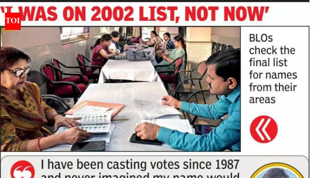 Kolkata: The electoral roll published on Saturday came as a shocker for several citizens whose voting rights were put under question by the EC, 24 years after their names had appeared on the last 2002 SIR list. Many others claimed to have submitted valid documents at the hearings but still found their names either deleted or put under adjudication. The anger over SIR deletion and adjudication decisions brewed across seats, where “victims” claimed harassment and humiliation caused by the EC exercise, apparently aimed at weeding out names of ineligible voters, including the dead and the duplicates.New Alipore resident Samir Mondal had cancelled his doctor’s appointment to attend SIR hearing to sort out logical discrepancy. As he checked the electoral roll on Sunday morning, he discovered his name was deleted. “Calling up the BLO I learnt the EC had struck me off the roll, even though I had submitted the documents during the hearing. What am I supposed to do now?” said Mondal. Another name to be deleted is that of Raj Kumar Paswan, a septuagenarian living on Durgapur Lane. He can barely walk but had still attended the hearing. “I gave all the documents, whatever they asked for. Why is my name omitted? Voters like me seem to have deleted, not based on their documents but on their voting preferences. Why should a genuine voter be humiliated?” Paswan said.Those marked ‘under adjudication’ are equally angry as they all claimed they had submitted all the documents required. Dipak Sharma, a resident of Ward 81 under Rashbehari constituency, said, “I have been casting votes since 1987 and never imagined that my right would ever be under adjudication.” An EC official said certain names had been put ‘under adjudication’ as “EROs/AEROs could not take a decision after hearing. Those names have been sent for adjudication by judicial officers, according to the Supreme Court order”.Shruti Basu, a resident of a housing complex in Narendrapur in Sonarpur South constituency, found her name deleted though it was there on the 2002 SIR list. “My name is deleted though I did not receive any summons for hearing. The BLO did not contact me. Some neighbours advised me to apply through Form 6,” she said. After Abhishek Basak, a voter from Maniktala constituency, was marked ‘deceased’ on the draft list, the BLO told him to submit his documents. “The BLO had said I had nothing to worry about but now I see my name is deleted.” In the same constituency, 274 voters have been marked ‘deleted’, according to Shantiranjan Kundu, Ward 32 councillor. Miraj Ahmed from part 52 of Ward 132 in Behala, Aparna Bhattacharya from part 110 and Shyamlakshna Das from part 111 also found themselves ‘deleted’. Aparna asked, “Am I a Bangladeshi or an infiltrator? Why did they delete me?”(With inputs from Dwaipayan Ghosh)