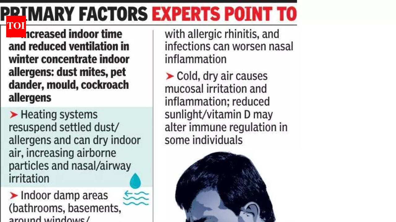 Pune: The presence of pollen and pollutants in the air during the winter season is triggering allergic bouts in people, which can disrupt their daily routine, said city doctors. Typical symptoms include cold, cough, sneeze and throat irritation. In long-standing allergic conditions, itch and irritation in eyes is also common, so it is important to rule out infections, said Dr Ashish Dhotre, pulmonologist at Noble Hospitals and Research Centre. He said, “Bronchitis commonly occurs due to rising pollution levels, such as traffic and air pollution, excessive dust exposure, pollen, and cold environmental conditions. This year, the number of patients is slightly higher compared to the corresponding period last year.” If symptoms persist for a long time, over one week, it is advisable to consult a doctor and undergo basic investigations such as serum eosinophil count, IgE levels, and a chest X-ray to enable targeted treatment, Dr Dhotre said. “Some patients may require anti-allergic treatment for four-eight weeks. Nowadays, allergic skin testing is also available for severe cases,” he said, adding preventive measures include using a mask and maintaining proper hand hygiene.Dr Sachin Shah, director of neonatal and paediatric intensive care services, said not just in adults, there is an increase in allergy-related cases among children. “Most of the patients coming to us are under seven years, and the symptoms include a runny nose, persistent cough, and redness in eyes. Despite these symptoms, they do not test positive for any viral infection. There are two types of phenotypes when it comes to allergies. It could be a purely allergic reaction to any environmental factor like pollution or pollen, and the other phenotype is the allergy triggered following a viral infection,” he said.Doctors usually treat these children with anti-allergic medicines and nebulisers, Dr Shah added.