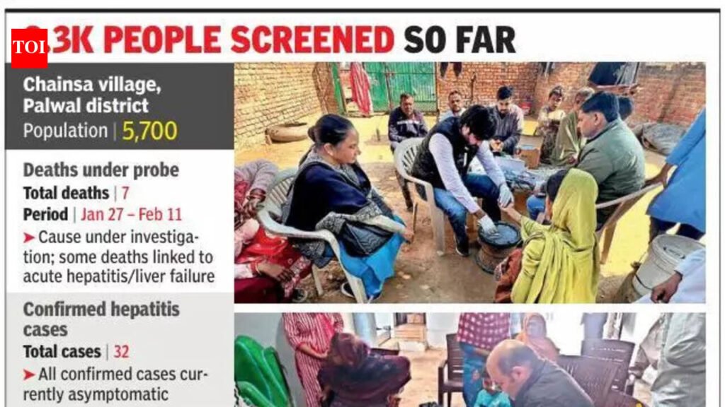 Gurgaon: Three fresh hepatitis infections — the first instances of Hepatitis B cases recorded in Chhainsa village of Palwal in recent weeks — have pushed the total number of confirmed cases to 32.Officials said the three new cases were detected during random screening, which was initiated against the backdrop of seven deaths reported over the past 15 days. Of the 32 cases so far, three are of Hepatitis B, while the remaining infections are Hepatitis C. “As of now, none of the patients has symptoms. We are prescribing medicines for them and immunising everyone against Hepatitis B and C,” a senior doctor involved in the exercise said.Health teams have so far screened more than 800 residents and collected blood samples for viral load testing, which will determine the course and duration of treatment. “Treatment depends on the viral load. If the viral load is low, there is no need for long-term medication. As a precaution, medicines are being given for now. After 10-15 days, those with high viral load will continue treatment, while medicines will be stopped for others,” the doctor said.While the deaths have heightened anxiety in the village, officials said investigations were still underway to establish whether the fatalities were directly caused by hepatitis. In the wake of infections, many villagers have complained about fever, vomiting, body pain and cough.At present, two patients are admitted to the civil hospital, while the rest are being monitored at home. Officials said those admitted earlier as a precaution have stabilised.The investigation has also turned the spotlight on possible water contamination. During inspections, the public health department found 25 illegal connections to drinking water pipelines, which led to leakages and raised fears of contamination. Officials said the connections have now been removed, and engineers are checking supply lines for further breaches. “Chlorinated water is being supplied now,” an official said.Water samples collected from six households have also tested positive for E coli, indicating faecal contamination, while earlier tests showed inadequate chlorination in stored water.Alongside screening, the health department has begun vaccinating close contacts to curb further spread of the infection. “If a parent is positive and children are negative, we are immunising the children as a precaution. Adults in contact areas who test negative are also being immunised,” said Satinder Vashisth, the Palwal CMO.Under a special drive, 80 people were vaccinated on Sunday and 70 on Saturday, while a special OPD tested 193 residents. Officials said most infections were detected among those with close contact with infected persons, with cases more common in the 15-35 age group.Officials have also flagged other possible routes of transmission. According to them, some village youths working as heavy vehicle drivers in other states may have contracted the infection there due to unsafe sexual practices. “In a few cases, the use of infected syringes for drug use was also detected,” an official said, adding that Hepatitis B could also spread through steroid injections administered by unqualified practitioners.Three medical camps have been set up in and around Chhainsa to ensure access to screening and treatment, while teams are covering nearby villages.Panic has gripped the village following the rising infections. “All of a sudden, people have started falling ill. First, there were deaths. Now, hepatitis cases are rising. Everyone is worried about the water we have been drinking,” said Usman, a villager.