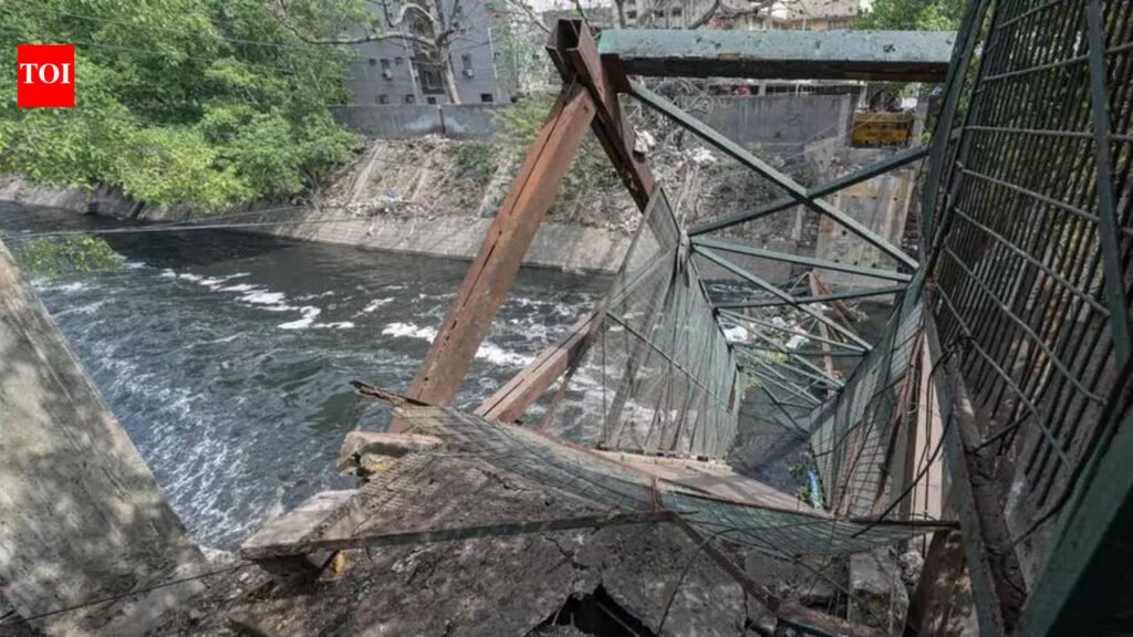 New Delhi: A 60-foot iron foot overbridge built across the Najafgarh drain collapsed in north Delhi’s Roop Nagar on Tuesday, killing a woman who fell into the drain water.Following a PCR call at 9.28am, teams from police, the fire brigade, National Disaster Response Force and other agencies conducted rescue operations at the site near Block 3. Six boat club rescuers searched 200 metres of the area and retrieved the body after one and a half hours. Police said the woman was probably a beggar in her 50s and yet to be identified. Locals also said they did not know the victim. DCP (north) Raja Banthia said a case under Section 106 (1) (causing death by negligence) of Bharatiya Nyaya Sanhita had been registered at Roop Nagar police station.The bridge connected Rajpura Gurmandi village with Roop Nagar. The section on the Roop Nagar side gave way in a slanted form. At the site, the bridge appeared dilapidated, with the fall having caused further damage. Residents said it often used to shake. The iron structure was rusted, the nets were in poor condition, and the walking path was made of slabs. The water below was flowing strongly. The area, near Delhi University, has at least five schools, including govt institutions, and numerous hostels and PG accommodations.Tina, a cook who was just a few steps from the bridge, said she noticed it shaking and initially thought monkeys were on it. Moments later, the vibrations intensified, and the structure gave way. She saw the woman trying to get up before falling into the drain. Shocked, Tina ran home screaming and crying.“For the past 12 years, I have been using this bridge. It used to shake, so initially I didn’t think that something like this would happen. I cannot forget the last moment — the woman tried to get up and then it collapsed. There was a loud blast,” she recalled.Another cook, Sanju, a resident of Rajpura, and a woman had just crossed the bridge and heard people shouting warnings to run. Seconds later, the bridge collapsed with a loud crash. Totaram, a shopkeeper, said he heard a loud sound, “just like a blast”. For residents, the only relief was that the incident did not occur in the early morning when many people, including college students, school children and office-goers, would have been on the bridge, or around 1 or 2pm, when children return home. “Several children use this bridge to cross,” said Arvind, who works at a hostel, adding that at least four-five people on both sides were about to step on it. Another resident noted that since most classes and examinations were not on, the bridge was less crowded.Residents said children and others used the bridge daily instead of taking the longer main-road route to save 10-15 minutes. The main road is also considered risky.Locals said there were two iron railings on one side and three on the other side of the bridge, and a wall to prevent crossing, but all were partially damaged. Police frequently install barricades, but they are usually ignored.Neeta Mardi, a Roop Nagar resident, witnessed the collapse from her second-floor balcony. “Police always put up barricades, but people, especially those on two-wheelers, remove them to cross. Garbage is also thrown onto the bridge.”