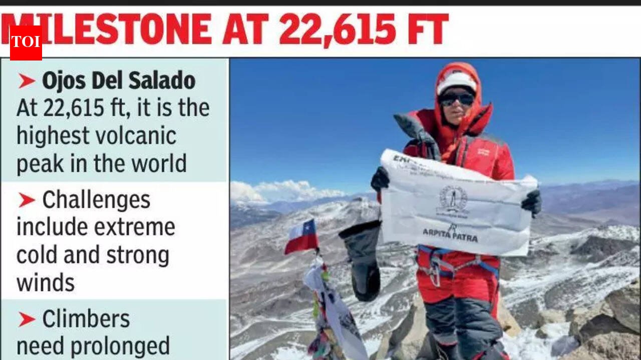 Kolkata: Arpita Patra, a city-based climber, became the first Bengali woman to climb the highest volcanic peak in the world, Ojos Del Salado (22,615 ft), on the Chile-Argentina border on Mar 7. Patra earlier scaled four more volcanic peaks.A faculty member of the Indian Institute of Science, Bengaluru, Patra tried Ojos Del Salado a year back. “I was preparing for Mt Aconcagua and thought of giving it a try. I couldn’t make it but I learned from the mistakes,” said Patra over the phone from Chile.She started from Copiapo in Chile on Feb 26 and headed for a few climbs to acclimatise herself. She climbed Laguna Verde (more than 14,000 ft) and Nevado San Francisco (more than 19,700 ft) to get a hang of high altitudes. “I decided to take a rest for a day before I started for Ojos Del Salado. I did a climb till 6,300 metres (20,660 ft), primarily to further acclimatise myself. The acclimatisation process is very important for this peak, as it demands rapid acclimatisation during ascent,” said Patra.The preparation for the final push from the base camp started on Mar 6. Since the volcano, located in the Atacama Desert, is characterised by an extremely arid and high-altitude climate, it requires a very high level of fitness to tackle physical fatigue. Patra started from the base camp at 2 am local time on Mar 7. “It was very cold and windy. I reached the Caldera area by midnight. I knew that the tough zone was about to come,” said Patra.“The 50-metre stretch before the summit is very steep and quite a difficult one to climb at that altitude. Scrambling through a 50-metre steep slope may sound easy, but it is very challenging at nearly 7,000-metre altitude amid cold and strong winds. Physical fatigue starts to set in by that time,” said Satyarup Siddhanta, the Guinness record-holder climber who reached the Ojos Del Salado peak in 2018.“I reached the summit at around 3.45 pm local time (nearly midnight in India) on Mar 7. I was having a headache and feeling nauseated. But the view from the peak made me forget every challenge I faced,” Patra said.