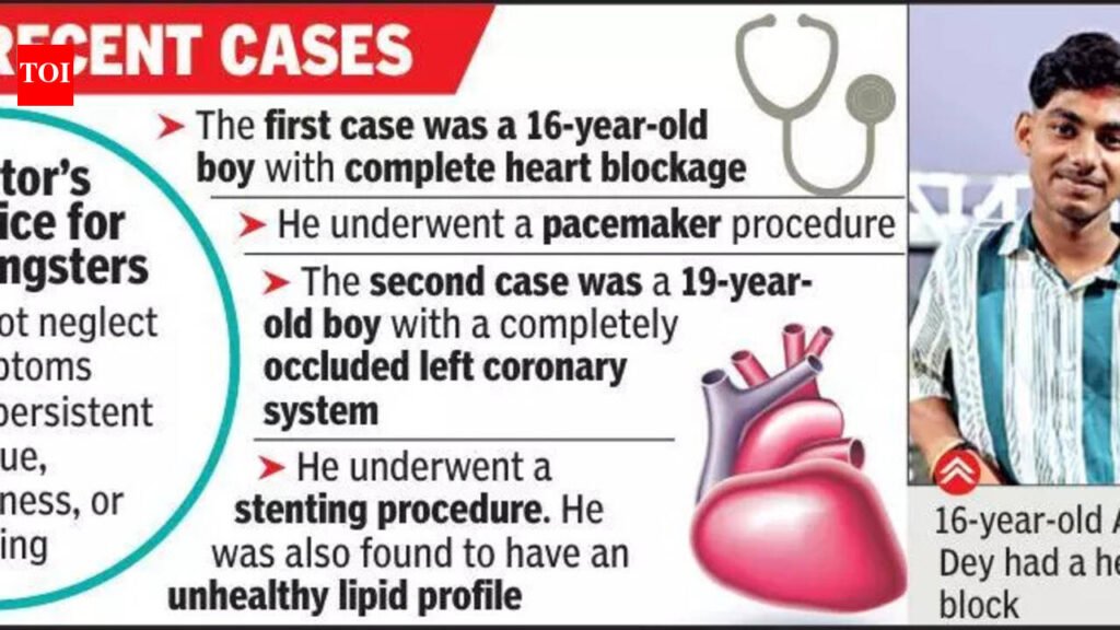 Kolkata: Akash Dey (16) from Coochbehar was rushed to a Kolkata hospital a few days before his Madhyamik board examination. Doctors found complete heart blockage, uncommon at such a young age. Five days after a life-saving pacemaker implantation, the boy wrote his board examination. On Thursday, he came to the hospital for a follow-up, and doctors said all is fine with him.Despite persistent fatigue, dizziness, breathlessness, and frequent near-fainting episodes, the teenager from Kholta village was busy preparing for his examination. But when his condition worsened, his parents rushed him to Manipal Hospitals Mukundapur.Interventional Cardiologist Parijat Deb Choudhury diagnosed him with complete heart block. If left untreated, it can reduce blood flow to vital organs and become life-threatening.The doctor performed a permanent pacemaker implantation on Jan 27. Globally, less than 1% of pacemaker recipients are under the age of 18.“While complete heart blockage is seen more commonly in the elderly, it is rare in a 16-year-old. In young patients, symptoms like persistent fatigue, dizziness, or fainting are often overlooked, which can delay diagnosis. What stands out in this case is not only the success of the surgery, but also the patient’s spirit,” Deb Choudhury said.Akash responded well and went back home to write his board examination that began on Feb 2.Bengal govt’s Swasthya Sathi scheme came to the rescue of the family with modest income, with the hospital ensuring the treatment under this scheme. “I am thankful to the hospital and the doctors for making it possible for me to appear for my Madhyamik exams,” said Akash, who came back for the check-up on Thursday.In another case, a 19-year-old boy from Basirhat was rushed to Manipal Dhakuria a few days ago after a massive heart attack. He had collapsed while playing football. Angiography revealed a completely occluded left coronary system. Despite 3 episodes of cardiac arrest during angioplasty, he was successfully revived, and interventional cardiologist Soumya Kanti Dutta and his team performed left main bifurcation stenting successfully. “Coronary artery disease and myocardial infarction occur in people above 40–50 years. A 19-year-old developing a severe coronary event is extremely uncommon, particularly in the case of this patient, who is a non-smoker, non-diabetic, non-hypertensive, with no family history of cardiac diseases,” said Dutta.